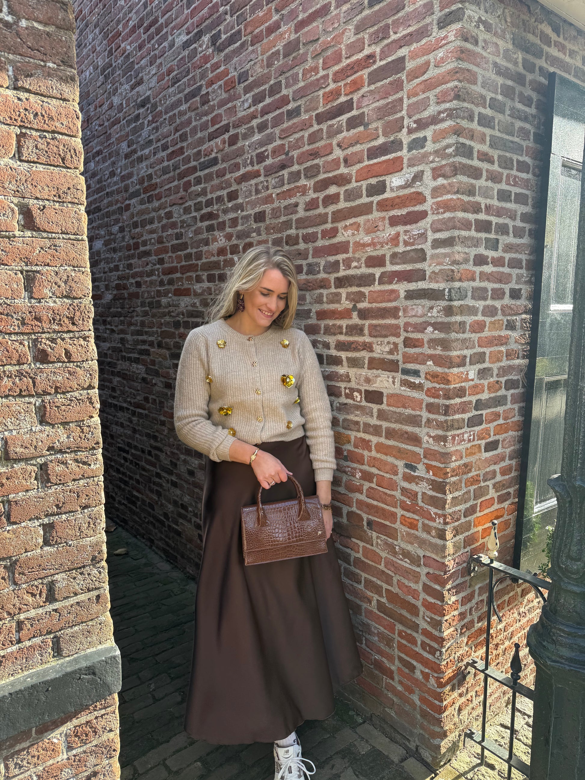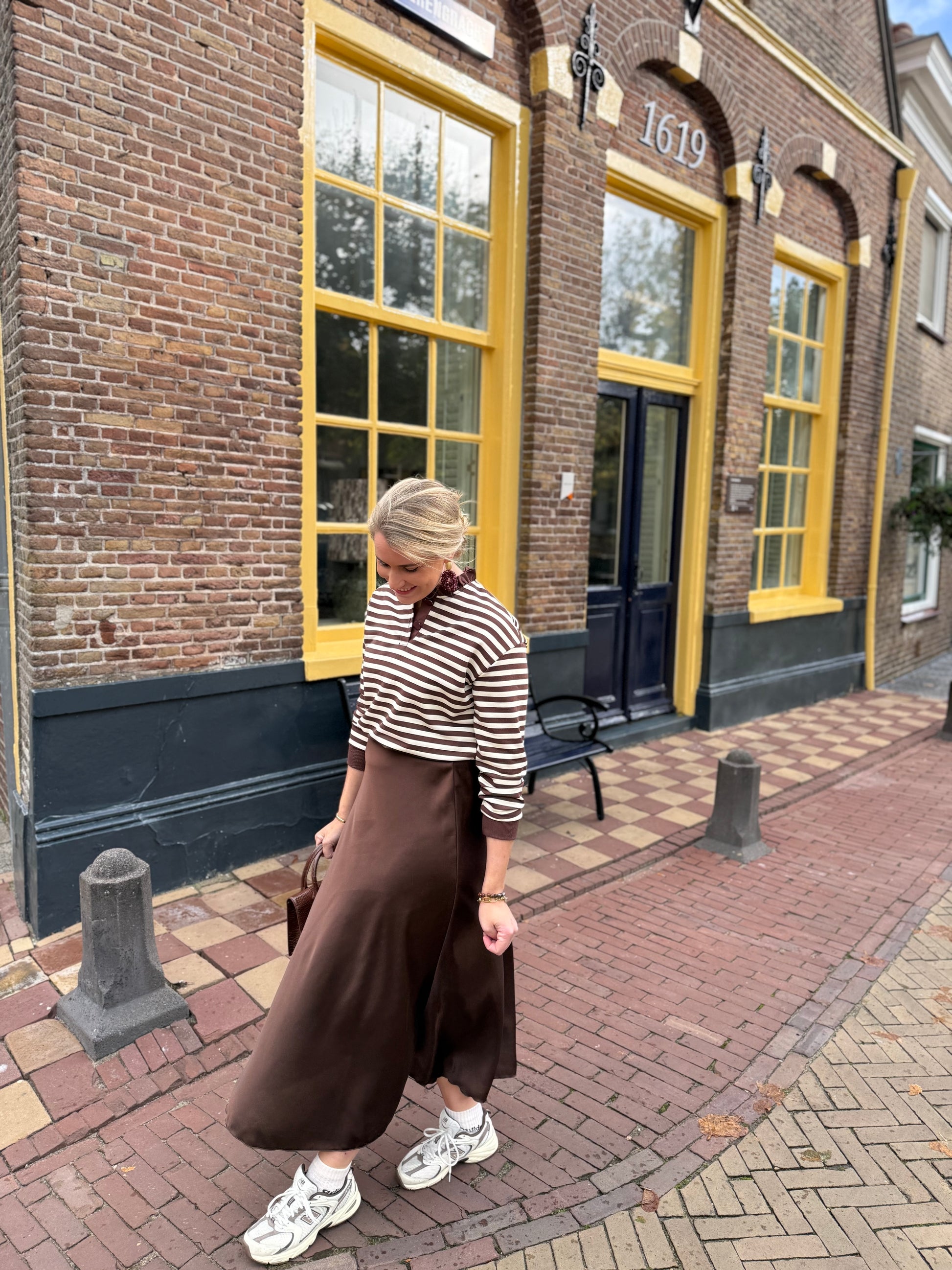 Deze satijnen midi rok in een diepe bruine kleur is elegant, comfortabel en super makkelijk te stylen. De rok valt soepel en heeft een mooie glans, waardoor hij zowel casual als chic gedragen kan worden. Perfect voor elke dag én voor een avondje uit.