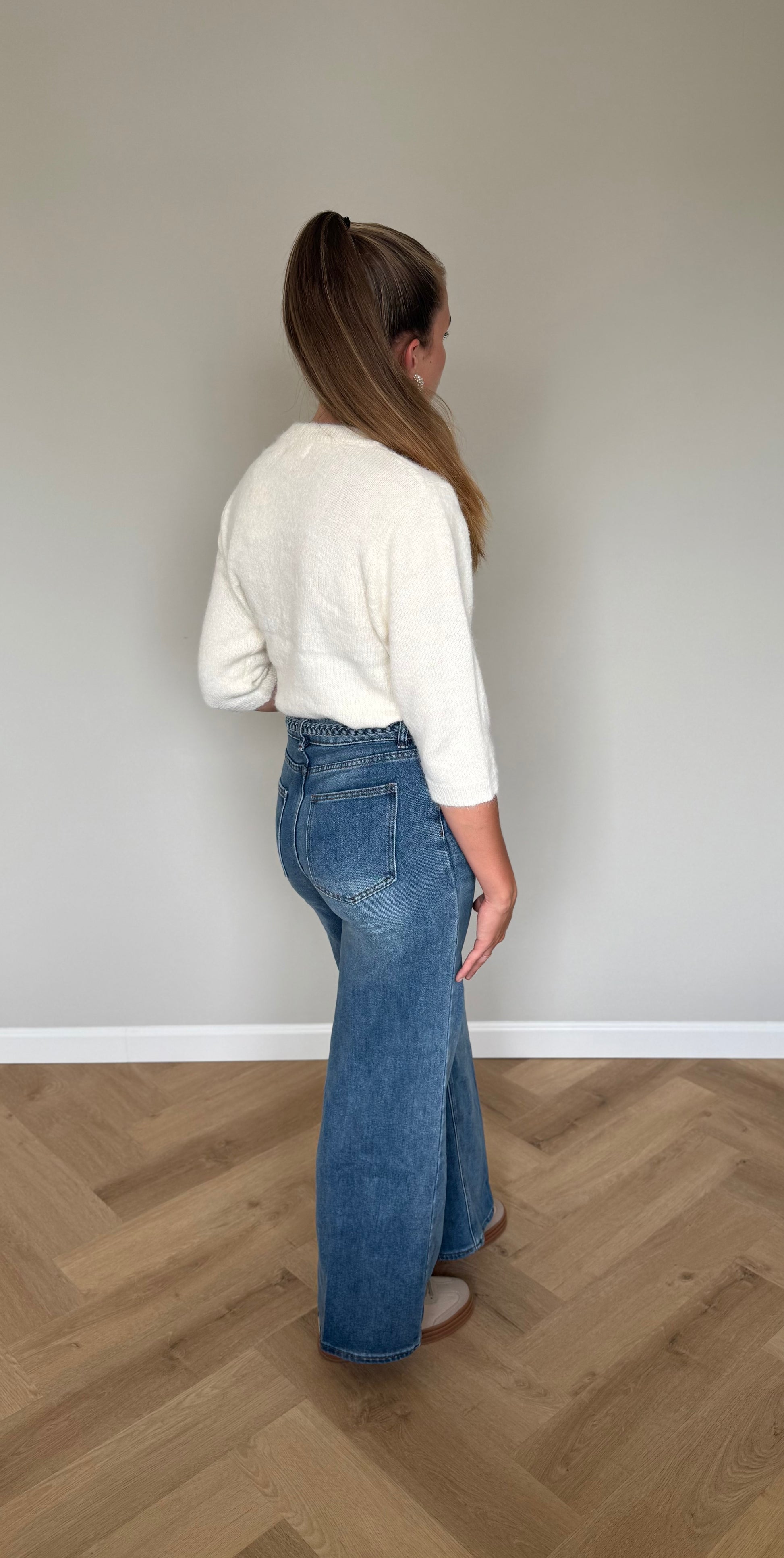 Wide leg Jeans met gevlochten detail aan de bovenzijde.
