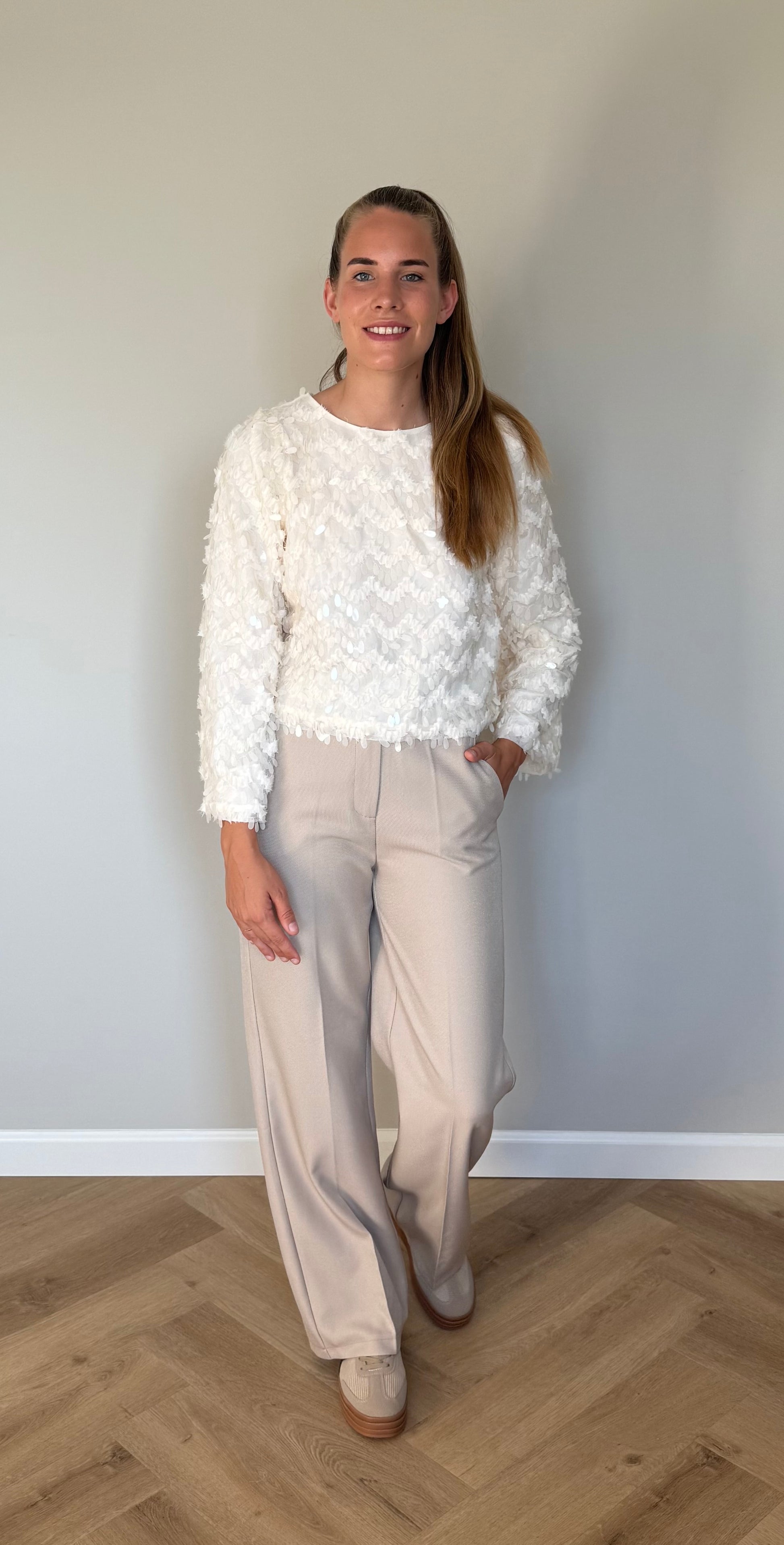 Deze tijdloze pantalon is perfect te stijlen met een blazer of warme trui. De mooie beige kleur zorgt voor een chique uitstraling.